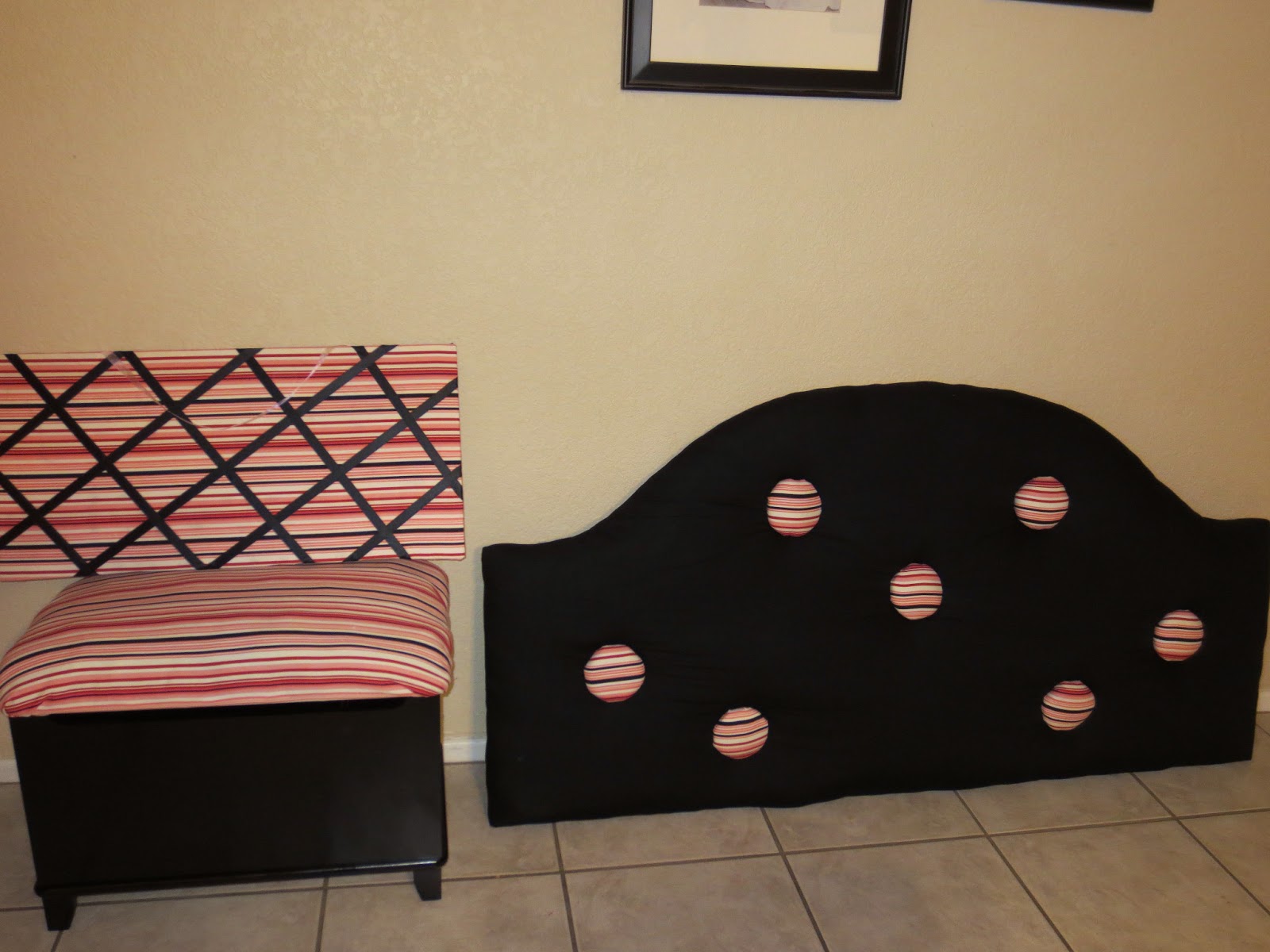 These are for my girls for their room. Nancy cut out the headboard and the "buttons" and she helped me cover it and put it all together. I love that she is so handy.